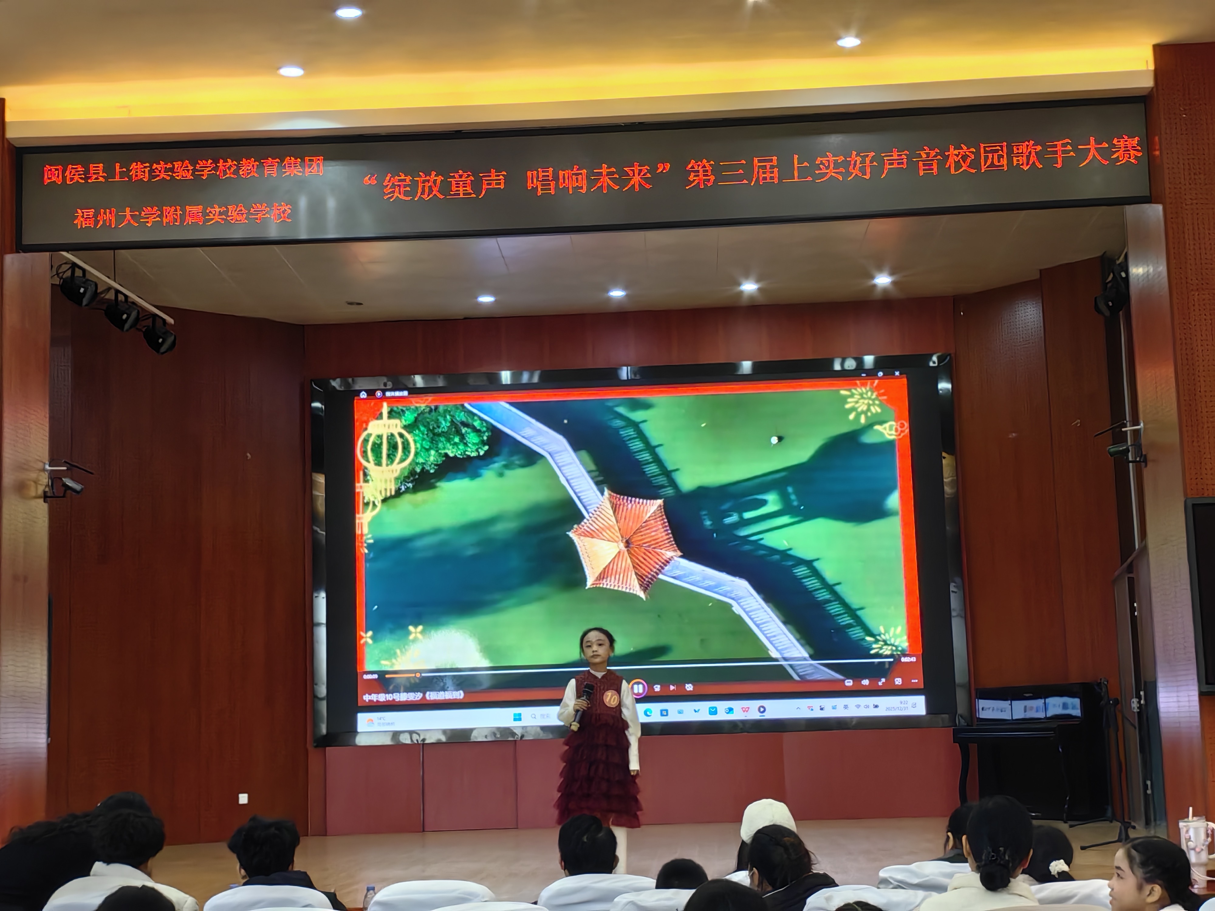 2025年12月31日上午,“绽放童声,唱响未来”第三届上实好声音校园歌手大赛在闽侯县上街实验学校(福州大学附属实验学校)立德楼三楼多功能厅顺利举行。活动延续往届传统,以歌声传递梦想,进一步提升学生艺术素养,营造充满活力的校园美育氛围。